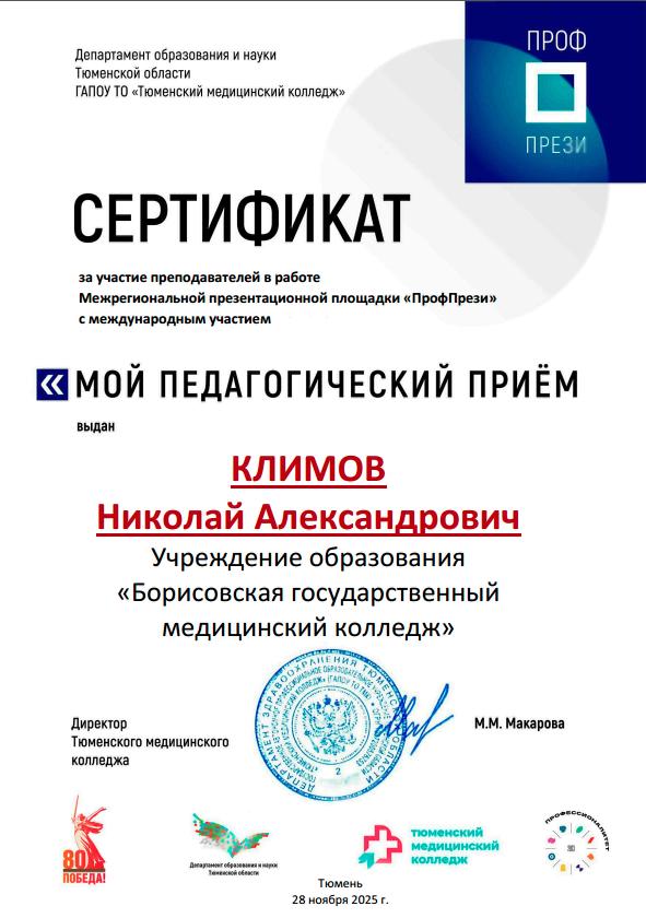 Преподаватели колледжа ежегодно становятся участниками Межрегиональной презентационной площадки с международным участием «ПрофПрези» «Мой педагогический прием». Организатор – ГАПОУ ТО «Тюменский медицинский колледж».