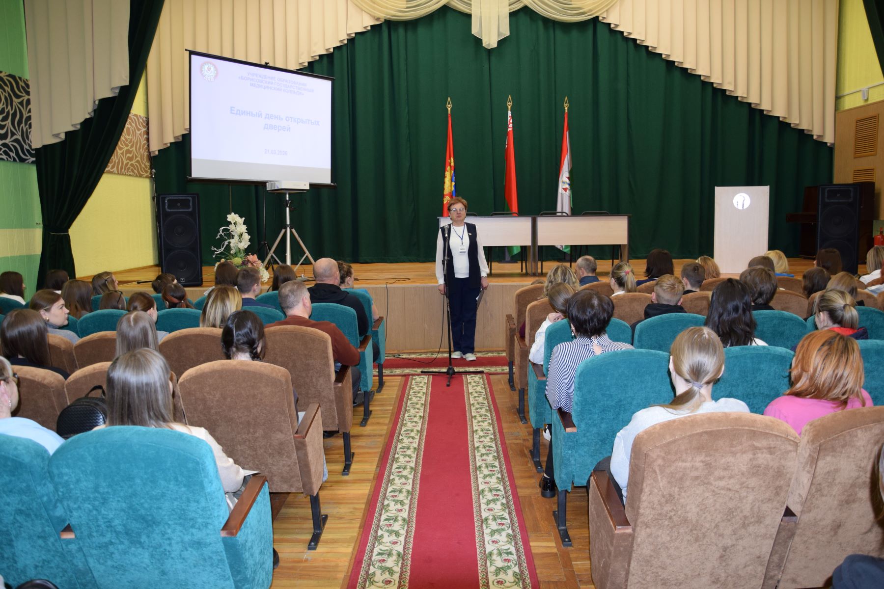 В актовом зале колледжа будущих абитуриентов приветствовала заместитель директора по воспитательной работе Метельская И. В., которая рассказала о традициях, достижениях и перспективах развития колледжа.