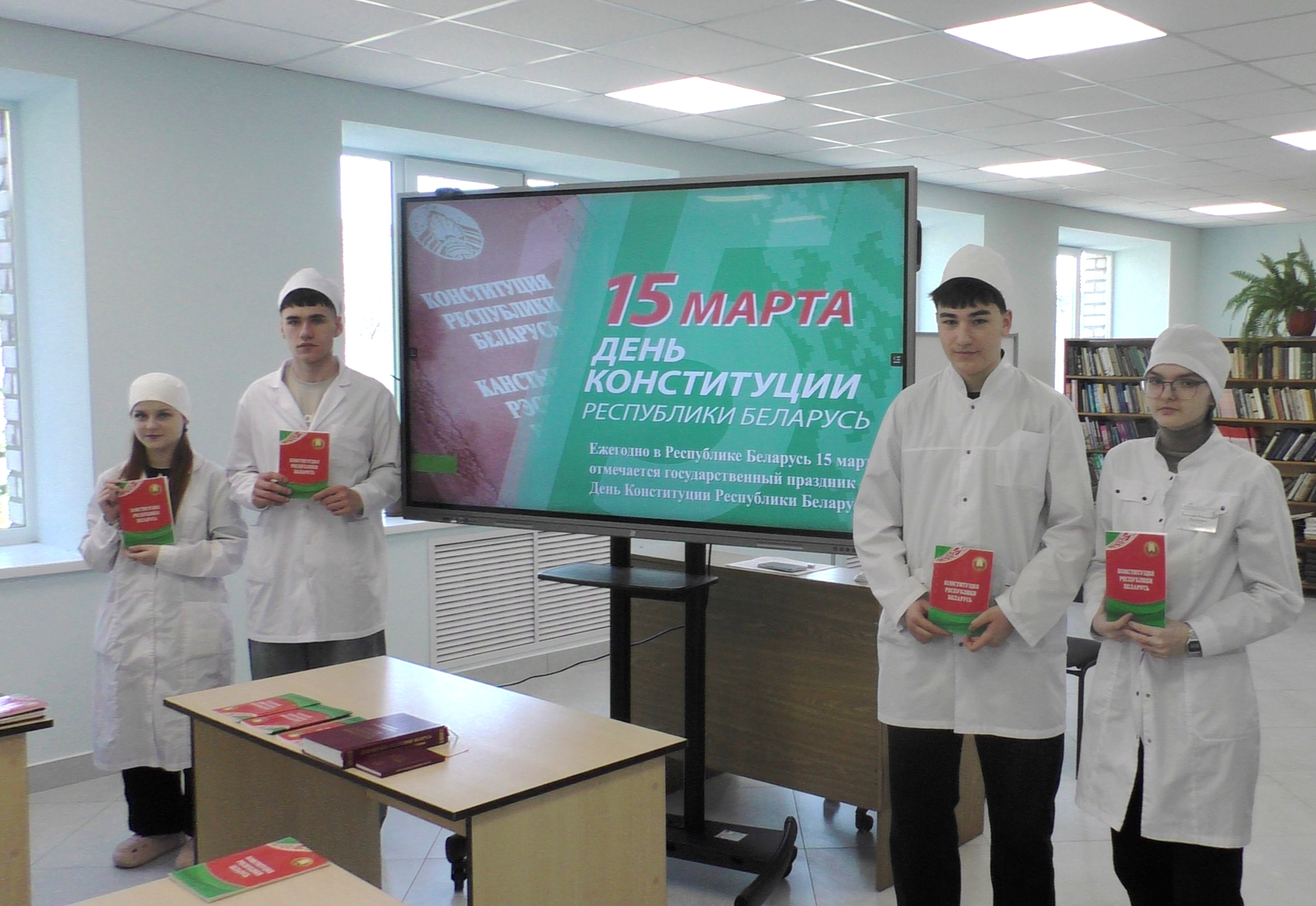 В учебных группах колледжа состоялся единый урок «Конституция Республики Беларусь - основной закон государства», посвященный Дню Конституции Республики Беларусь. Тема была рассмотрена также со слушателями отделения повышения квалификации и переподготовки руководящих работников и специалистов