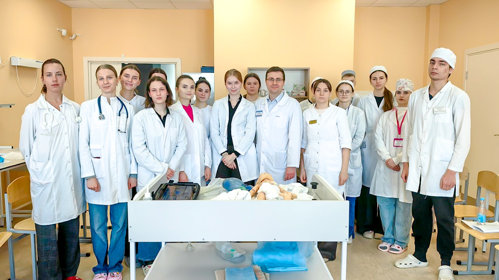 17.02.2026 в рамках сетевого взаимодействия учащиеся группы ЛД-232 и студенты педиатрического факультета учреждения образования «Белорусский государственный медицинский университет» провели в практико-ориентированном корпусе университета совместный тренинг по теме «Первичная реанимация новорожденного в родильном зале».