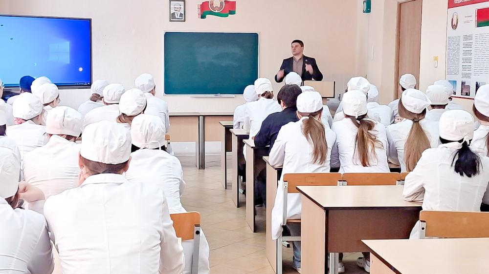 17.02.2026 в рамках областной межведомственной профилактической акции «Дружим с Законом!» в колледже прошел час информирования для учащихся 1-го и 2 курсов (ЛД-251, ЛД-241, ЛД-253) с приглашением заместителя начальника отдела по наркоконтролю и противодействию торговле людьми Борисовского РУВД Щеглова Сергея Александровича. Тема выступления: «Умей сказать «НЕТ» психоактивным, наркотическим и психотропным веществам».