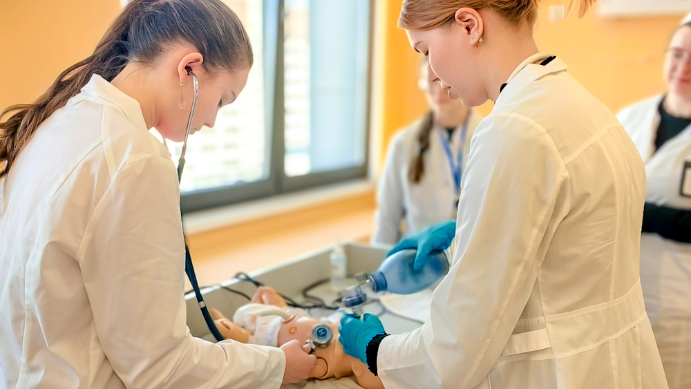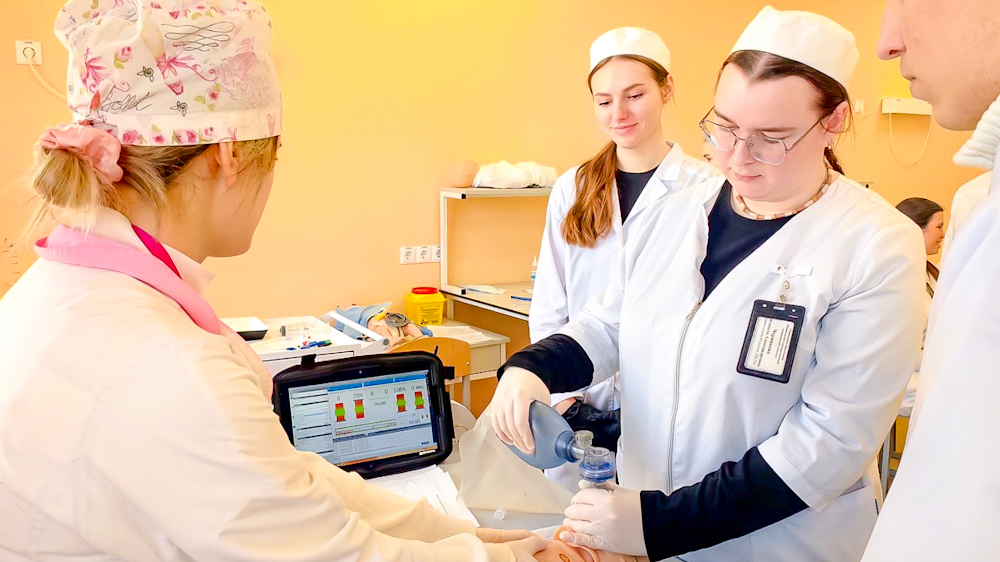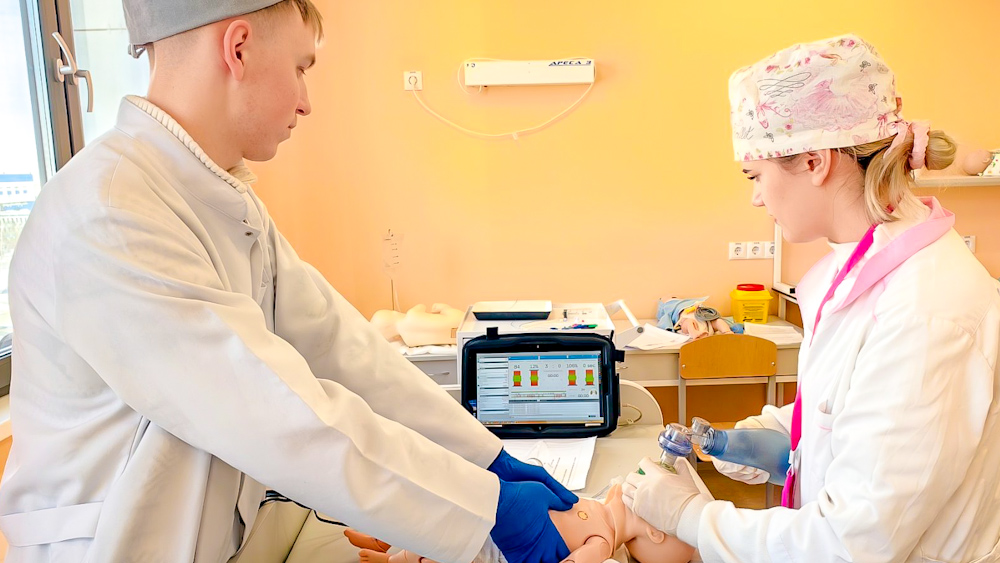 17.02.2026 в рамках сетевого взаимодействия учащиеся группы ЛД-232 и студенты педиатрического факультета учреждения образования «Белорусский государственный медицинский университет» провели в практико-ориентированном корпусе университета совместный тренинг по теме «Первичная реанимация новорожденного в родильном зале».