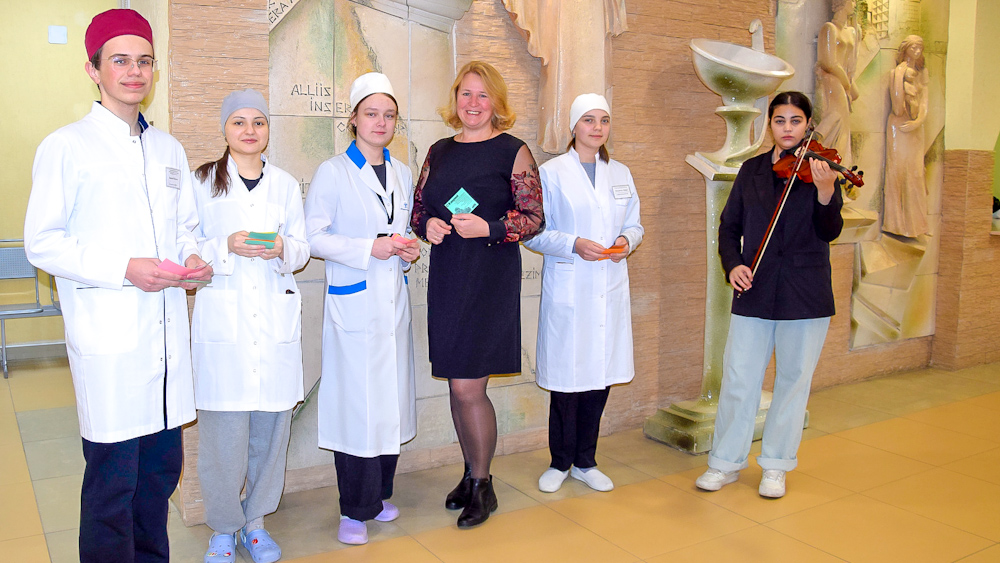 Под чарующие звуки скрипки, виртуозно исполненные учащейся учебной группы СД-255 Самедовой Айсень, ребята с улыбками и теплыми словами обращались к своим любимым преподавателям. Каждое поздравление сопровождалось вручением открыток, наполненных искренними пожеланиями здоровья, счастья и весеннего настроения.