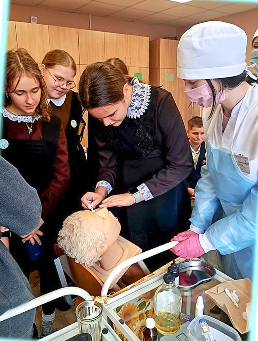 Преподаватели сестринского дела и манипуляционной техники вместе с обучающимися колледжа продемонстрировали ребятам манипуляции по уходу