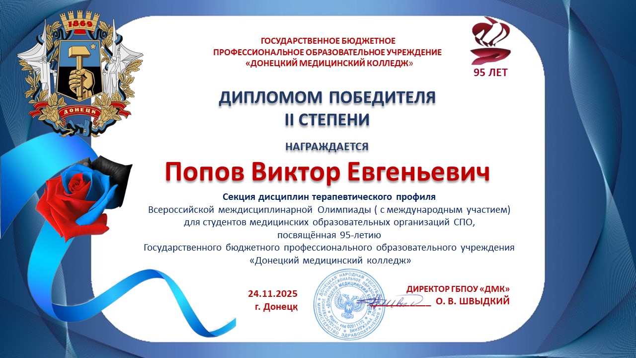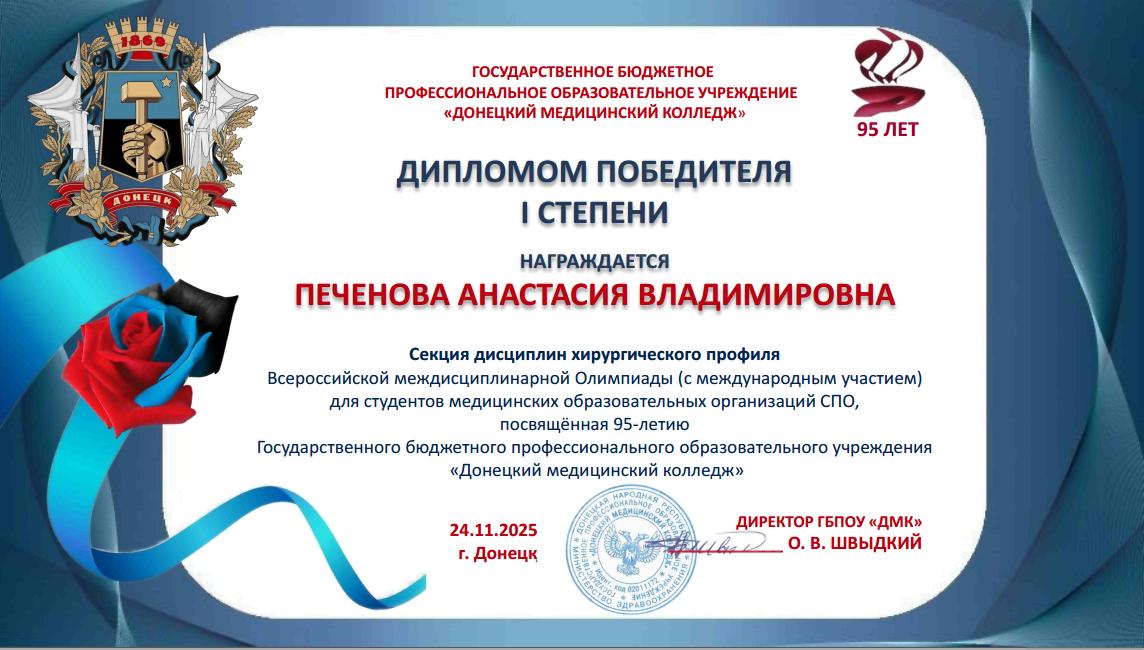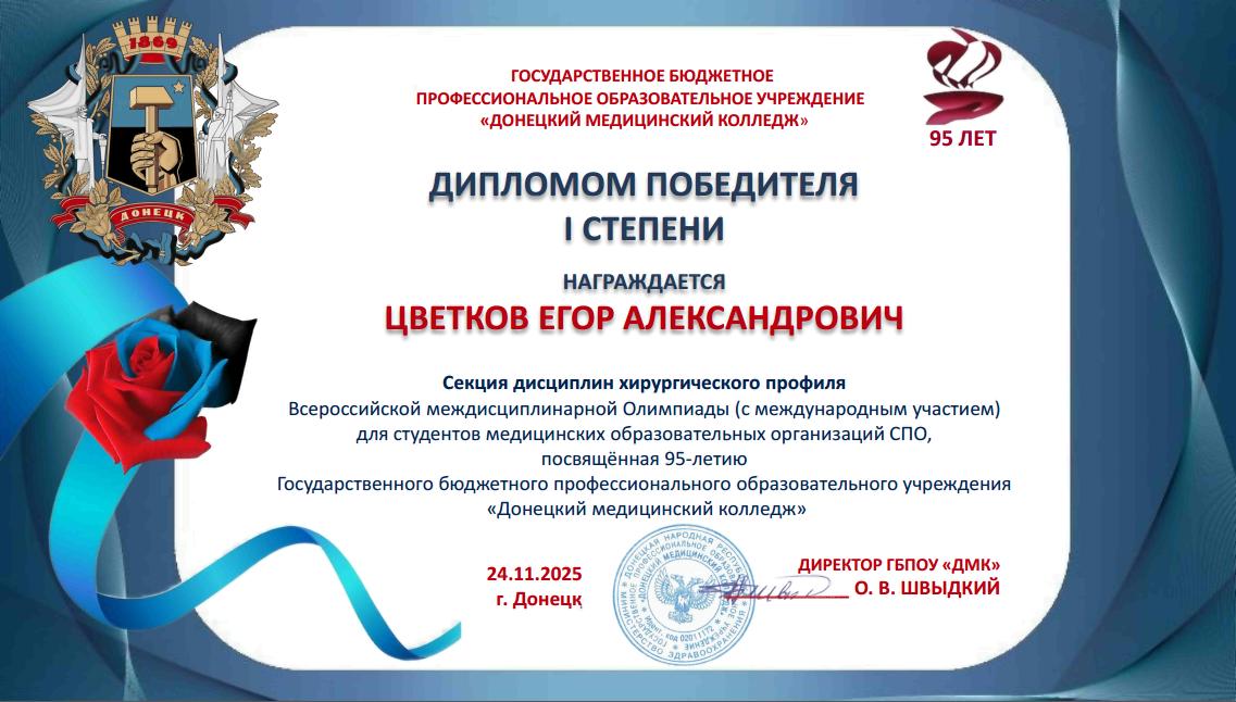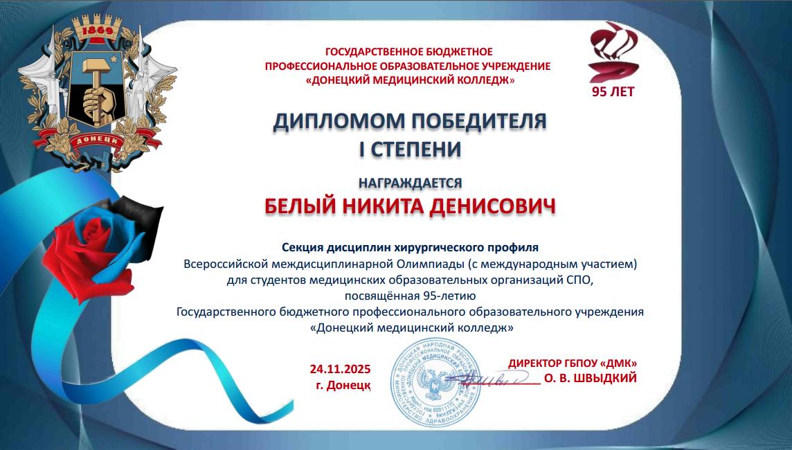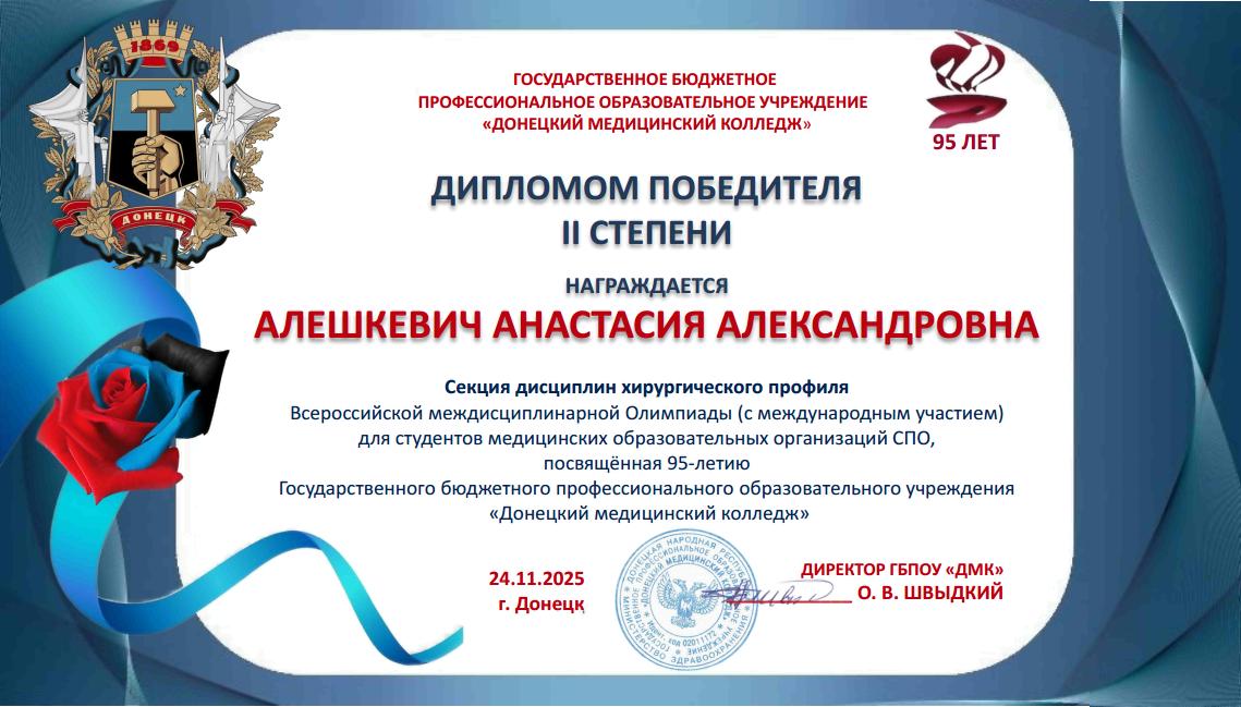 Учащиеся колледжа стали участниками Всероссийской междисциплинарной Олимпиады, посвященной 95-летию ГБПОУ «Донецкий медицинский колледж».