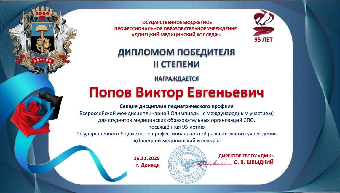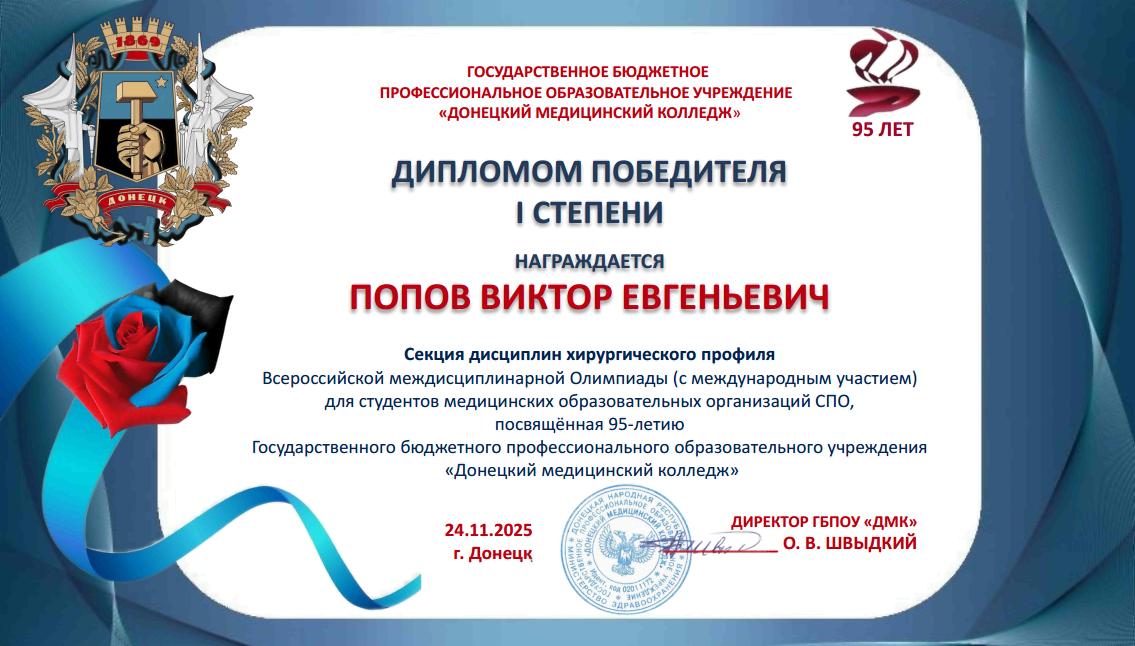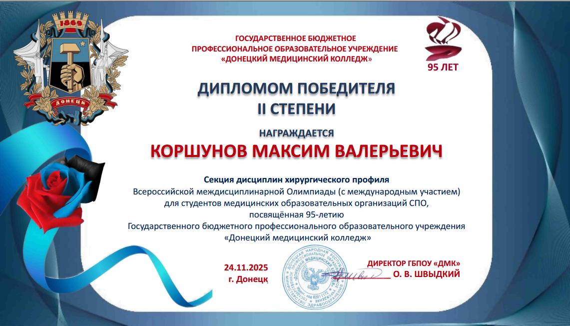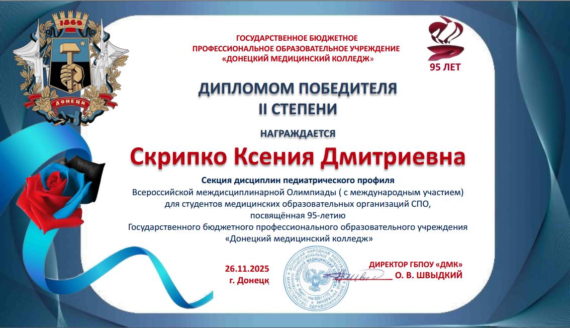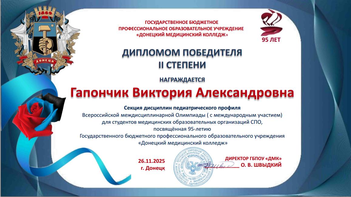 Учащиеся колледжа стали участниками Всероссийской междисциплинарной Олимпиады, посвященной 95-летию ГБПОУ «Донецкий медицинский колледж».