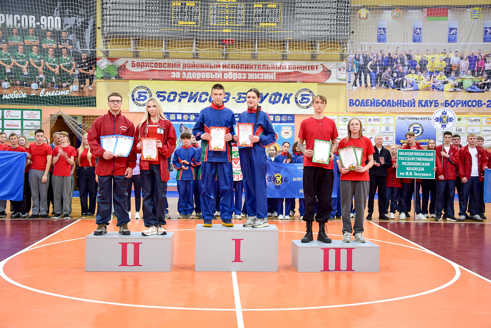 В упорной и напряженной борьбе команда Борисовского медицинского колледжа разделила ПЕРВОЕ место с командой Молодечненского медколледжа. У учащихся Слуцкого медколледжа – третье место. Победителям и призерам в командных и видовых соревнованиях, личном зачете вручены дипломы.