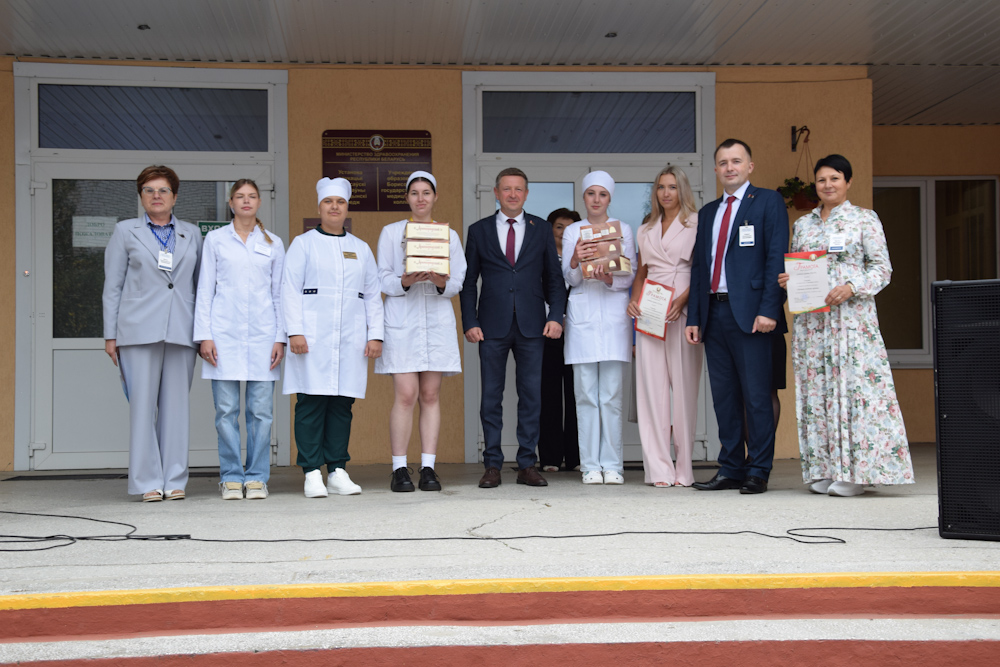 На линейке были вручены дипломы и грамоты отличникам учебы, победителям и призерам республиканских творческих конкурсов, активным участникам студотрядовского движения-2025. Награждены лучшие учебные группы по итогам 2024/2025 учебного года: отделение «Лечебное дело» – учебная группа ЛД-231, отделение «Сестринское дело» – учебная группа СД-244.
