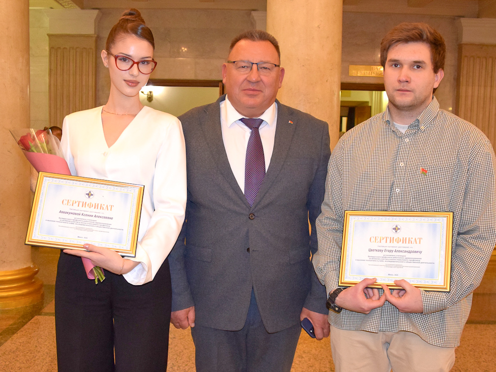 Обращаясь к молодежи, Александр Валерьевич подчеркнул, что профсоюзная стипендия – это признание их таланта, усердия и стремления к совершенству, завоеванное в серьезной конкуренции, и что будущее белорусской медицины в надежных руках.