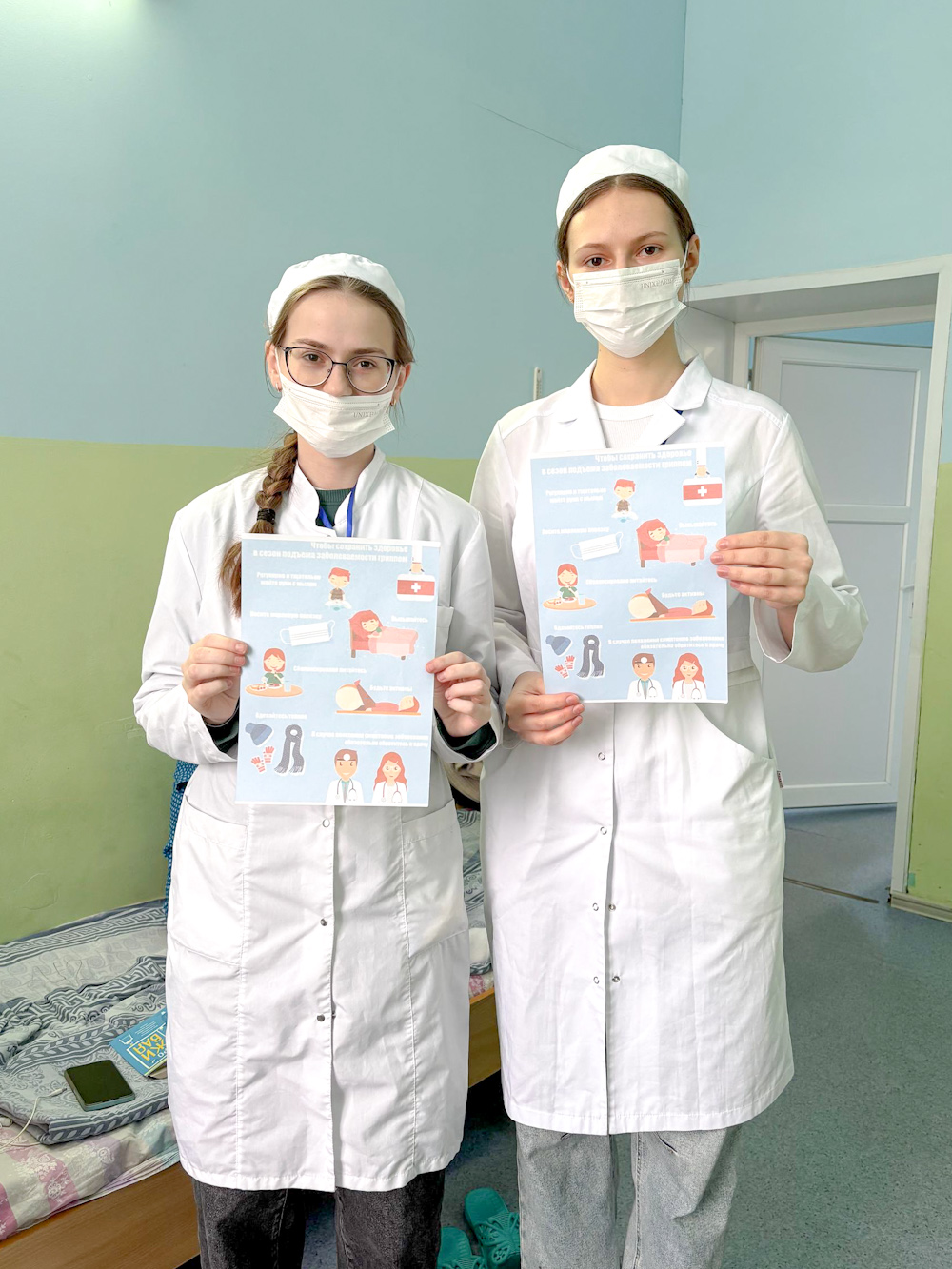24 ноября учащиеся учебной группы ЛД-232 Яковлева Елизавета и Тропец Виктория под руководством преподавателя Бересневой Л.А. провели образовательную беседу для пациентов неврологического отделения на тему «Вирусное заболевание – грипп». В ходе беседы пациенты проявили высокий интерес, внимательно слушали представленную информацию и активно участвовали в обсуждении, задавая уточняющие вопросы. По завершении беседы учащиеся вручили пациентам информационные памятки о гриппе.