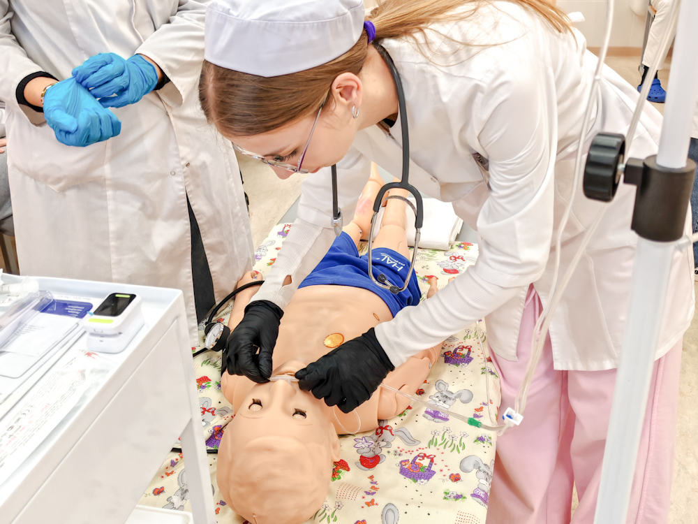 Студенты 4 курса педиатрического факультета совместно с учащимся учебной группы СД-243(3) выполняли ряд практических заданий, направленных на закрепление теоретических знаний и повышение уровня профессионализма. Была организована командная работа с применением клинического сценария "Оказание экстренной и неотложной медицинской помощи ребёнку 6 лет при развитии анафилактического шока на внутривенное введение лекарственного средства".