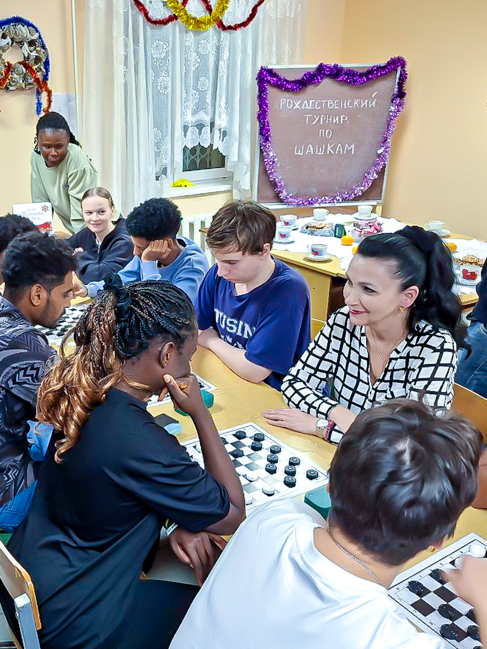 За игровыми столами встретились представители стран Африки: Эритрея, Гана, Эфиопия, Камерун и наши соотечественники. Для многих участников шашки стали своеобразным «международным языком», где не нужен переводчик – достаточно было логики, стратегии и уважительной улыбки.